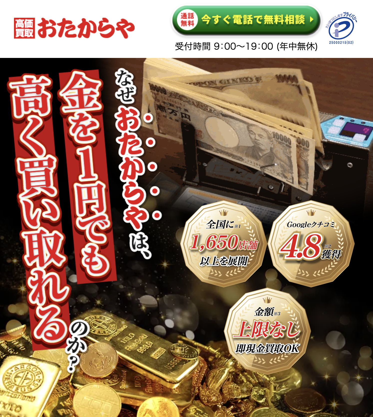 金・貴金属買取サービスおすすめ-おたからや