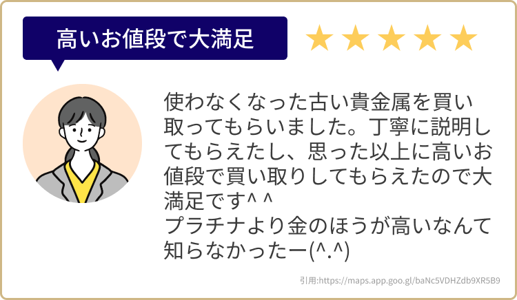 その日の市場動向や正しい価値を鑑定できるから、リサイクルショップよりも高く売れるんです!